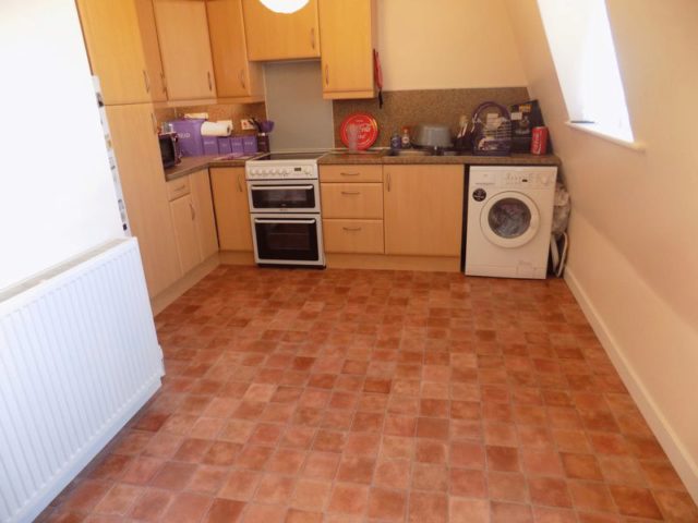 Reducing to 7' 9\". Lovely size kitchen with range of modern style wall and base units, 1 and a half bowl sink, radiator, coving and smooth plastered ceiling, plumbing for washing machine, double glazed window offering lovely river views.