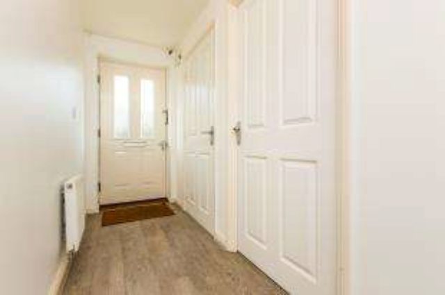 Entrance Hall4'11\" x 8'6\" (1.5m x 2.6m). UPVC front double glazed door. Radiator, laminate flooring, a built-in wardrobe with shelving and ceiling light.