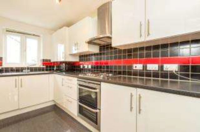 Kitchen5'10\" x 13'1\" (1.78m x 3.99m). Double glazed uPVC window facing the rear. Radiator, tiled flooring, a pantry, tiled splashbacks, spotlights. Granite effect work surface, built-in wall and base units, inset stainless steel sink with drainer, integrated oven, integrated four ring gas hob, stainless steel extractor, space for dishwasher, integrated washer dryer, and space fridge/freezer.