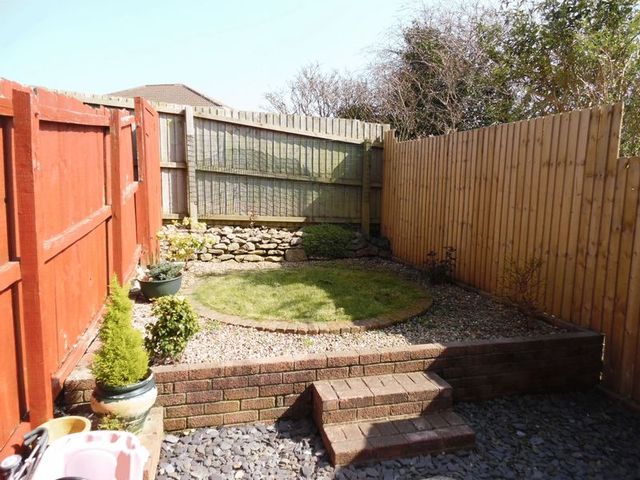 The enclosed rear garden is laid to decorative chippings with steps leading to an area of lawn.