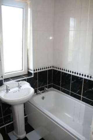 Having a three piece suite in whitecomprising panel bath, pedestal wash basin and close coupled WC. Over the bath is a Mira plumbed in shower withglazed shower screen. Heating is provided by a heated towel rail. The bathroom has been finished offwith blackand white mottled tiles a mirror fronted bathroom cabinet, concealed spotlightsto the ceiling and vinyl floor covering