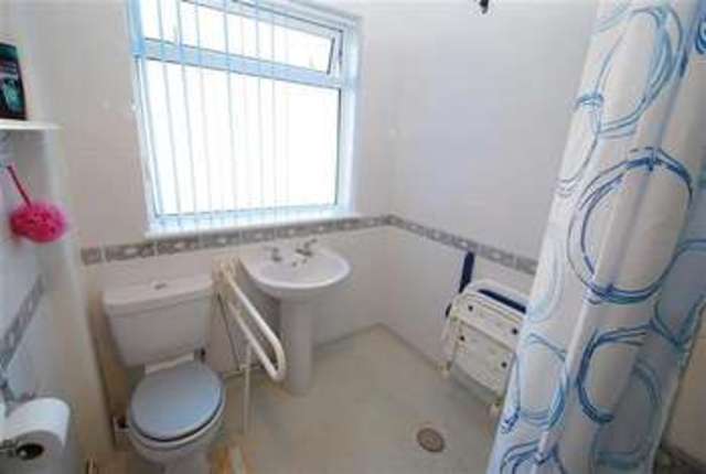 Being tiled with a sealed floor and shower area with Triton electric shower therein, pedestal wash basin with tiled splash backs, close coupled WC, radiator, toiletry shelf, bathroom cabinet, access to roof space and ceiling light point. Built in airing cupboard housing insulated hot water cylinder with electric immersion heater and slatted shelving.