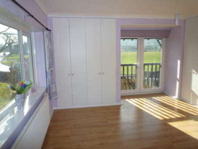 A lovely light and bright good size room having large uPVC double glazed window to the side aspect and uPVC double glazed French doors with Juliet balcony balustrade to the front aspect, both offering fantastic countryside views. Built in wardrobes and cupboards. Shelving to alcove. Laminated flooring. Coving. Radiator. Door to en-suite.
