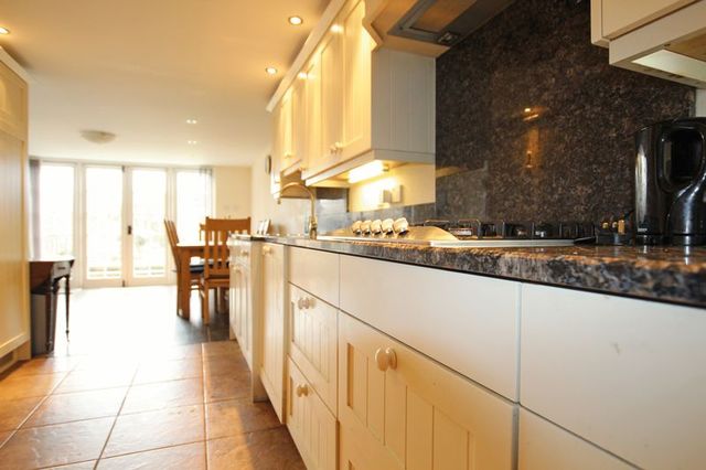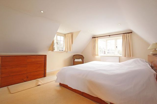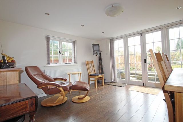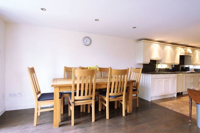 Upon entering the property you are immersed in the past by the wealth of historic features. A solid wood door opens into the sitting room featuring exposed ceiling and wall beams and a focal point of the most imposing brick inglenook fireplace. A wooden latch door leads to the hallway hosting the engineered oak staircase and providing access to the principal rooms including the study with attractive fitted furniture. The extended kitchen dining room enjoys a bright and airy feel via a dual aspect and French door to the gardens. The kitchen has been thoughtfully designed by a well reputed local kitchen company and features an extensive range of hand crafted white cottage units with granite worktops over. There are fitted appliances including a larder fridge and freezer, Miele dishwasher, oven and cooker with five ring gas hob. There is also access to a cloakroom and a wood panelled door to the side access. The dining area features solid oak flooring and has ample room to accommodate a sizeable family dining suite. The landing provides access to large storage cupboards, the loft hatch and three generous double bedrooms with the master enjoying an impressive ensuite contemporary bathroom. Bedroom two boasts a dual aspect with exposed brick feature fireplace and including bedroom three, both are serviced by a modern family bathroom.