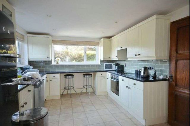 14' (4.26m) x 9'4 (2.84m). Walk-in coats storage cupboard. Gas boiler. Stainless steel sink and ample appliance space. Cloakroom/W.C. Part glazed door to garden.