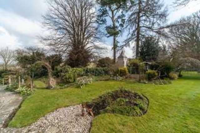 Wrought iron gate with paved path leading to rear garden and entrance door. Gate leading to a part walled courtyard leading to kitchen door and steps and path leading to rear garden. The majority of the garden is laid to lawns with borders stocked with a wide variety of flowering plants, mature shrubs and trees. There is a patio with two ponds and a summer house, with delightful views from the patio towards the church and fields beyond. Greenhouse. Shed/workshop. Path leading to the driveway and detached garage