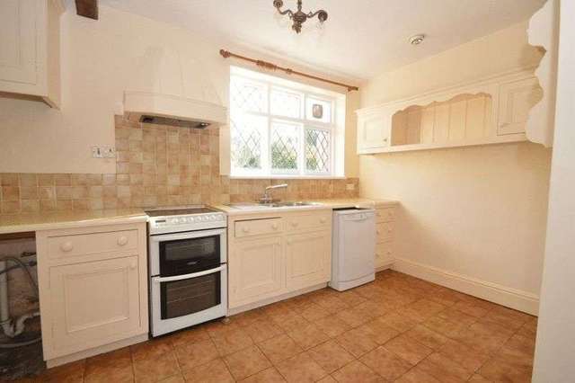 built in kitchen with basic units comprising of cupboards and drawers with worktop over, inset 1½ bowl sink and drainer unit, appliance space and plumbing for washing machine, dishwasher, cooker and fridge/freezer, built in chimney extractor hood, wall mounted Ideal gas central heating boiler concealed within wall mounted kitchen unit, tiled floor, large period windows to rear offering a pleasant outlook onto the rear garden and part glazed door to side accessing driveway and in turn rear garden.