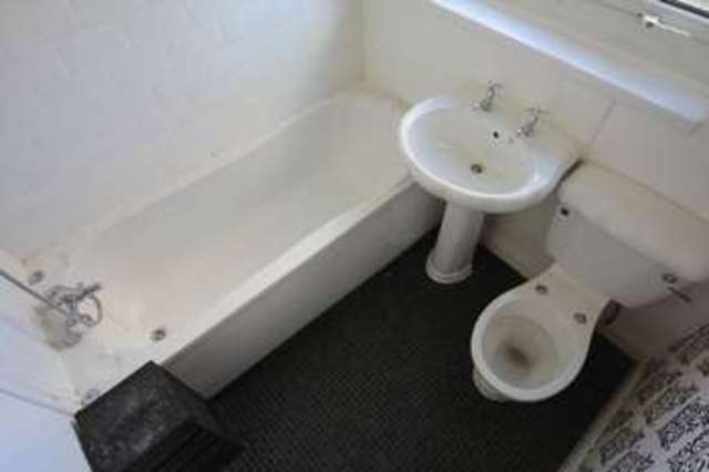 Bath with shower attachment over, wash basin, WC, radiator, UPVC double glazed window, tiled splash backs