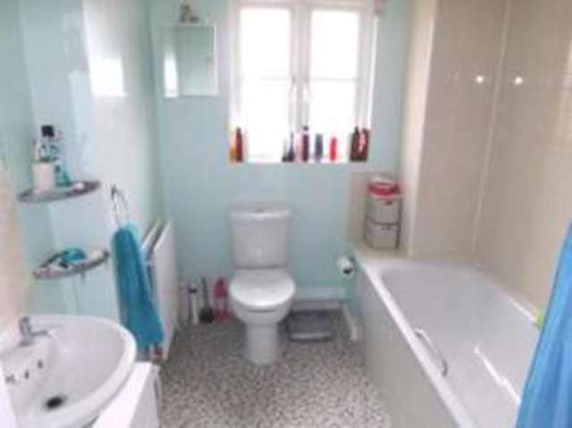 Bathroom6'7\" x 7' (2m x 2.13m). Radiator. Close coupled WC, panelled bath with shower over, pedestal wash basin, shaving point and window to the front.