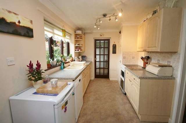 Fitted with a range of matching base and eye level units with roll edge work surfaces over. Inset 1.5 bowl single drainer stainless steel sink with mixer tap over. Plumbing for dishwasher. Radiator. Stairs to first floor landing.