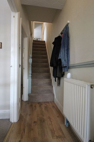 UPVC double glazed door to front, wood style laminate flooring, radiator