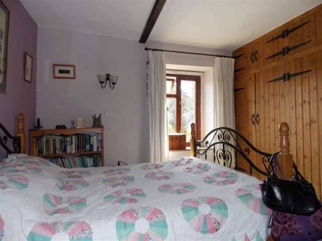 To the front of the house is an enclosed entrance porch with a door leading directly into the sitting room with an open fireplace and window to the front. From here doors lead into the dining room and inner hallway. The dining room has stripped wooden floors and a multi fuel stove and looks out to the front of the house. Steps lead down to a well equipped kitchen with built in hob and double oven. Beyond the kitchen is a useful space which is currently being used as utility room with plumbing for appliances, but could easily be put to other uses. The family bathroom is on the ground floor and has a raised bath and a separate shower cubicle.