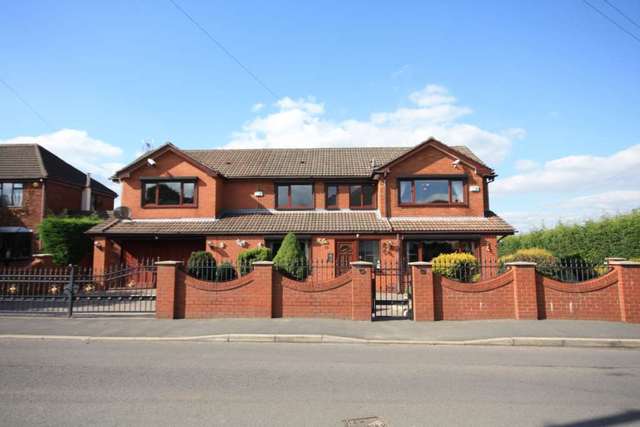 A generously extended detached home on Simister lane. The six bedroom property is of gargantuan proportions with enviable outside space to boot. The property is located just a short drive from Bury Old Road and close to the M60 motorway junction, and yet as you travel down Simister Lane, it would be easy to believe you were tucked away in the countryside. Beyond the large block paved, gated driveway sits proud, the generous family home.